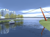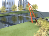 Konstrukci lávky celkové délky 127,85 m tvoří samokotvená visutá konstrukce o dvou polích délek 100,18 + 19,10 m. Mostovka, kterou tvoří páteřní ocelobetonový komorový nosník s oboustrannými konzolami, je v ose konstrukce zavěšena prostřednictvím visutého kabelu na skloněném pylonu tvaru písmene A.
