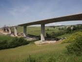 Most celkové délky 414 m s typickým rozpětím polí 65 m převádí oba směry dálnice po jediné nosné konstrukci tvořené jednokomorovým páteřním nosníkem s velmi vyloženými konzolami podepřenými prefabrikovanými deskovými vzpěrami. Výstavba páteřního nosníku je realizovaná ve výsuvné skruži využívající organického předpětí.