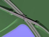 Most celkové délky 172 m s rozpětími od 15 do 54 m tvoří betonová lichoběžníková deska stavební výšky 0,50 m, která je na okrajích zavěšená na pylonu tvaru písmene A. Deska je v zavěšených polích vylehčena kazetou. Úhel křížení je 27,65g.